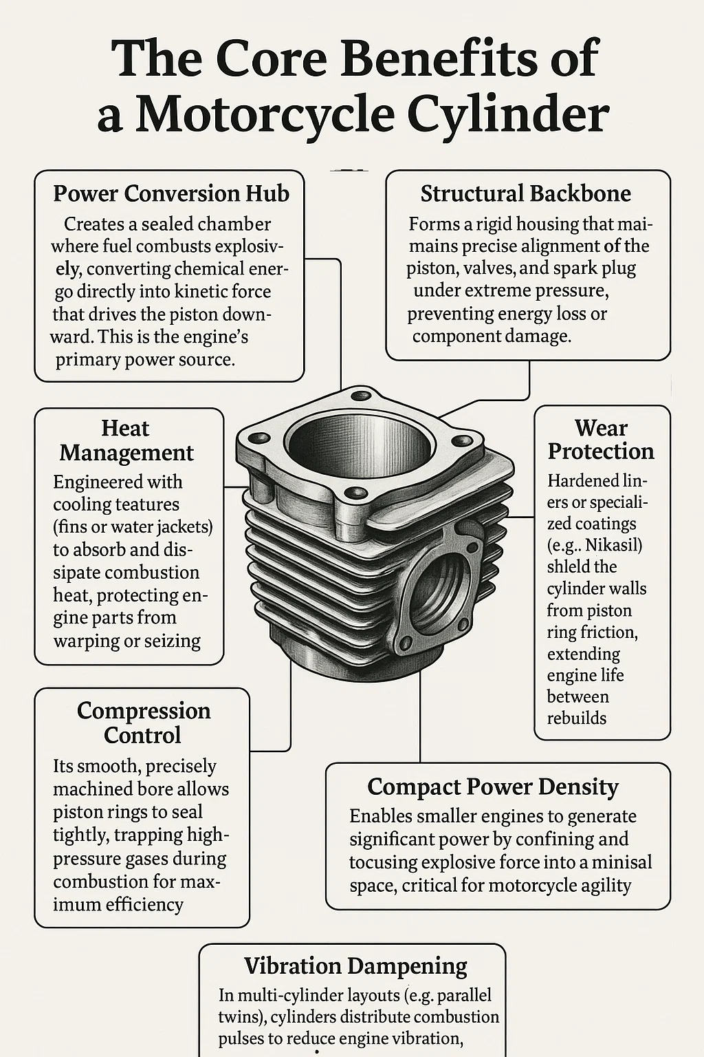در اینجا مزایای اصلی a سیلندر موتور سیکلت ، به طور عملی توضیح داد: